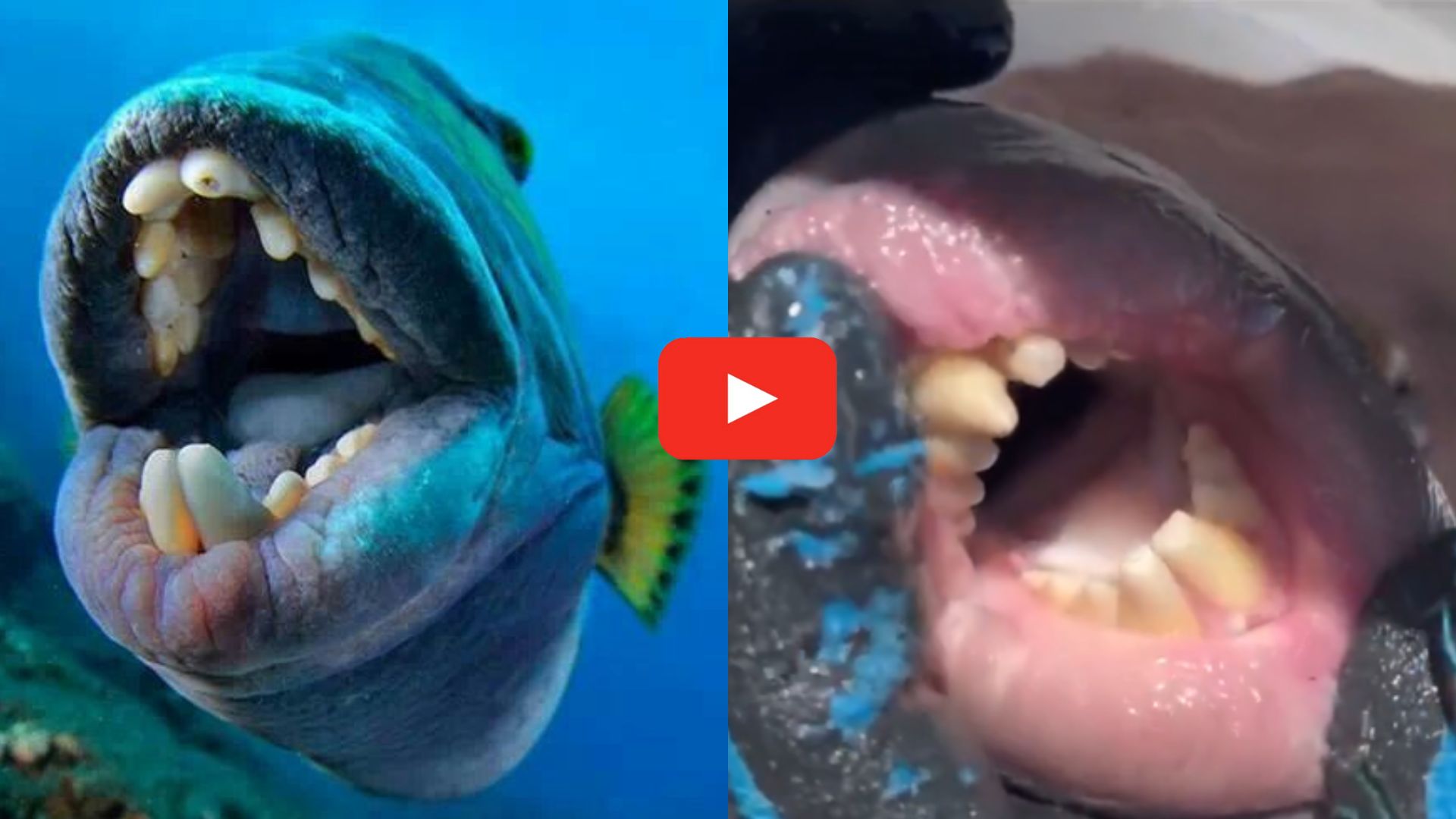 A fish with human-like lips and teeth known ad trigger fish #viralvideo pic.twitter.com/Edz1pLt8qv