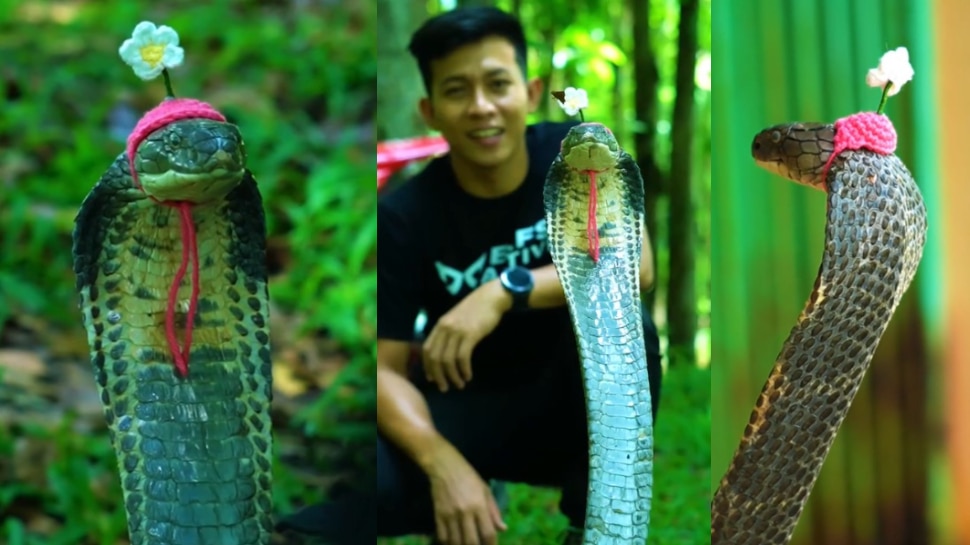 ఈ వీడియోలో.. మరీ స్నేక్ క్యాచర్ చిన్నతనం నుంచి కింగ్ కోబ్రాను పెంచుతున్నాడో మరెంటో కానీ.. అది అతని ఇంటి ముందుకు వచ్చింది. ఆ తర్వాత అతను కింగ్ కోబ్రాను తీసుకుని ఫారెస్ట్ కు తీసుకెళ్లాడు. దాని పడగకు ఒక టెడ్డీబెర్ లాంటి ఉలన్ మాస్క్ ను వేశాడు.