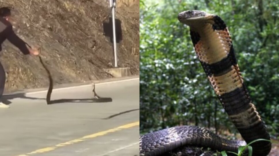 వైరల్ అవుతున్న వీడియోలో ఒక కేటుగాడు.. రోడ్డుపక్కన వెళ్తున్న కింగ్ కోబ్రాను రోడ్డు మీదకు తీసుకొచ్చి.. ఇష్టమున్నట్లు దాన్ని అటు ఇటు తిప్పుతూ టార్చర్ చేశారు. దీంతో కింగ్ కోబ్రా పలు మార్లు అతడ్ని కాటు వేసేందుకు ప్రయత్నించింది.