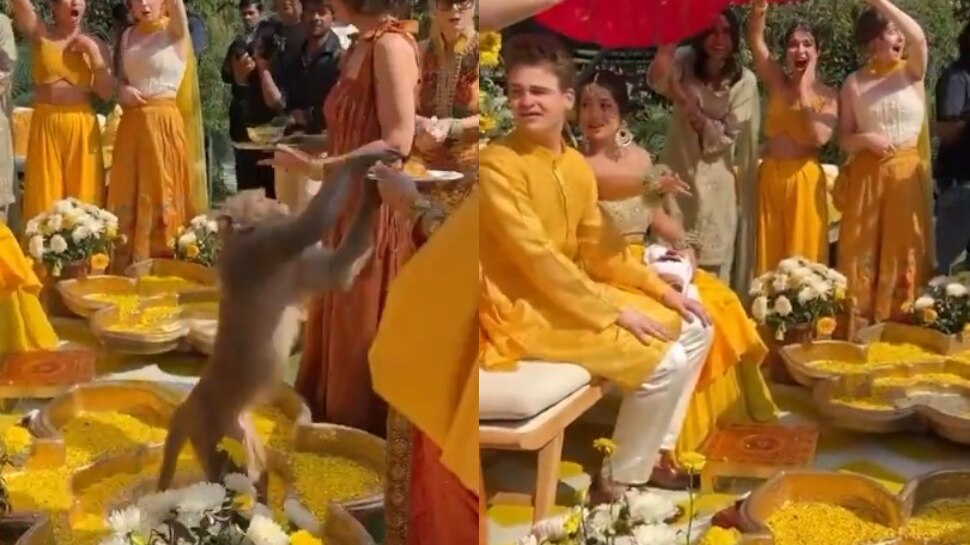 మరికొన్నిసార్లు కోతుల పనులు చూస్తే వెన్నులో వణుకు కూడా పుడుతుంది. ఈ నేపథ్యంలో ప్రస్తుతం ఒక వీడియో నెట్టింట తెగ వైరల్ గా మారింది. ఈ వీడియోలో.. ఒక కోతి హల్దీ వేడుక జరుగుతున్న ప్రదేశంకు వచ్చింది. దీంతో అక్కడున్న వారంతా భయంతో పరుగులు పెట్టారు. అక్కడ మరి కొంత మంది ఒకరికి మరోకరు లడ్డులు తిన్పించుకుంటున్నారు.