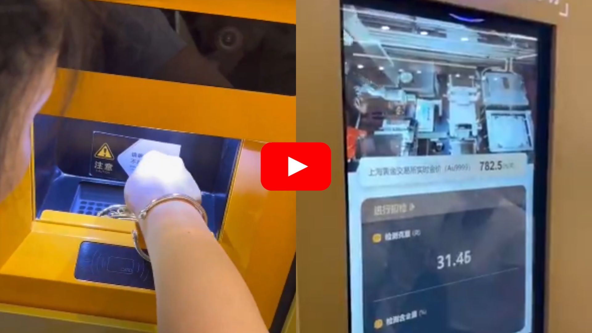 Gold Recycling ATM Video: చైనా ఎప్పటికప్పుడు కొత్తగా టెక్నాలజీని వినియోగించి కొత్త కొత్త మిషన్స్ ను తయారు చేస్తూ ఉంటుంది. వీటిని ప్రపంచ దేశాలకు ఎక్స్పోర్ట్ చేస్తుంది. తాజాగా చైనా మొట్టమొదటి బంగారం రీసైక్లింగ్ ఏటీఎంను ప్రవేశపెట్టింది. ఈ మిషన్ ధర తమ బంగారు ఆభరణాలు తక్షణమే ఎక్స్చేంజ్ చేసి డబ్బుగా మార్చుకోవచ్చు. ఈ నూతన బంగారం రీసైక్లింగ్ మిషన్ ను షాంఘైలోని గ్లోబల్ హార్బర్ షాపింగ్ మాల్లో ఏర్పాటు చేసినట్లు కింగ్హుడ్ గ్రూప్ తెలిపింది. అయితే దీనిని ప్రముఖ టెక్నాలజీ కంపెనీ కింగ్హుడ్ గ్రూప్ అభివృద్ధి చేసి మార్కెట్లో మంచి గుర్తింపు సంపాదించుకుంది. ఈ ప్రత్యేకమైన స్మార్ట్ మిషన్ చైనాలో మంచి ప్రజాదరణ పొందింది. ఇది బంగారం తూకం వేయడానికి, క్వాలిటీ స్కానింగ్ కోసం, కరిగించడానికి ఎంతో బాగా పనిచేస్తుంది. ప్రస్తుతం ఈ మిషన్ కు సంబంధించిన వీడియో సోషల్ మీడియాలో ఇప్పుడు వైరల్ గా మారింది.