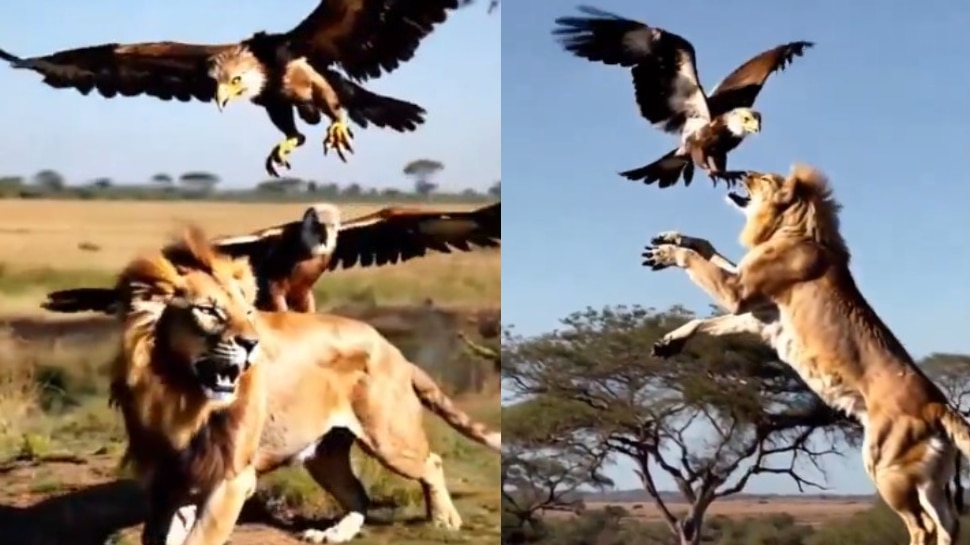 The fighting between hawks and Lion video: అడవిలో రకరకాల జంతువులు ఉంటాయి. వీటిలో కొన్ని సాధు జంతువులు కాగా, మరికొన్ని క్రూరమైన జంతువులు. సింహలు, పులులు, చిరుతలు, ఏనుగులు రకరకాల జంతువులు ఉంటాయి. అదే విధంగా జింకలు, గేదెలు, వీల్డర్ బీస్ట్ లు మొదలైనవి ఉంటాయి. ఈ నేపథ్యంలో ప్రస్తుతం క్రూర జంతువులు సాధు జంతువులపై తరచుగా దాడులుచేస్తుంటాయి. అడవికి సింహాన్ని రాజుగా చెప్తుంటారు. సింహం గాండ్రిస్తే కొన్ని కిలో మీటర్ల వరకు విన్పిస్తుంది.