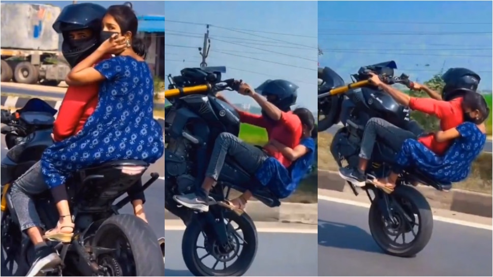 అసలే వాలెంటైన్స్ డే వేడుకల్ని యువత ఫుల్ జోష్ గా జరుపుకుంటారు. తమ మనస్సుకు నచ్చిన వారిని ఏదో విధంగా సర్ ప్రైజ్ చేయాలని రకరకాల ప్లాన్ లు వేస్తుంటారు. అంతేకాకుండా బైక్ ల మీద షికార్లకు వెళ్తుంటారు. అంతే కాకుండా.. ర్యాష్ డ్రైవింగ్ చేస్తుంటారు. ఈ నేపథ్యంలో ప్రస్తుతం ఒక ప్రేమ జంట రోడ్డు మీద బైక్ పైస్టంట్ లు వేస్తు రెచ్చిపోయారు.