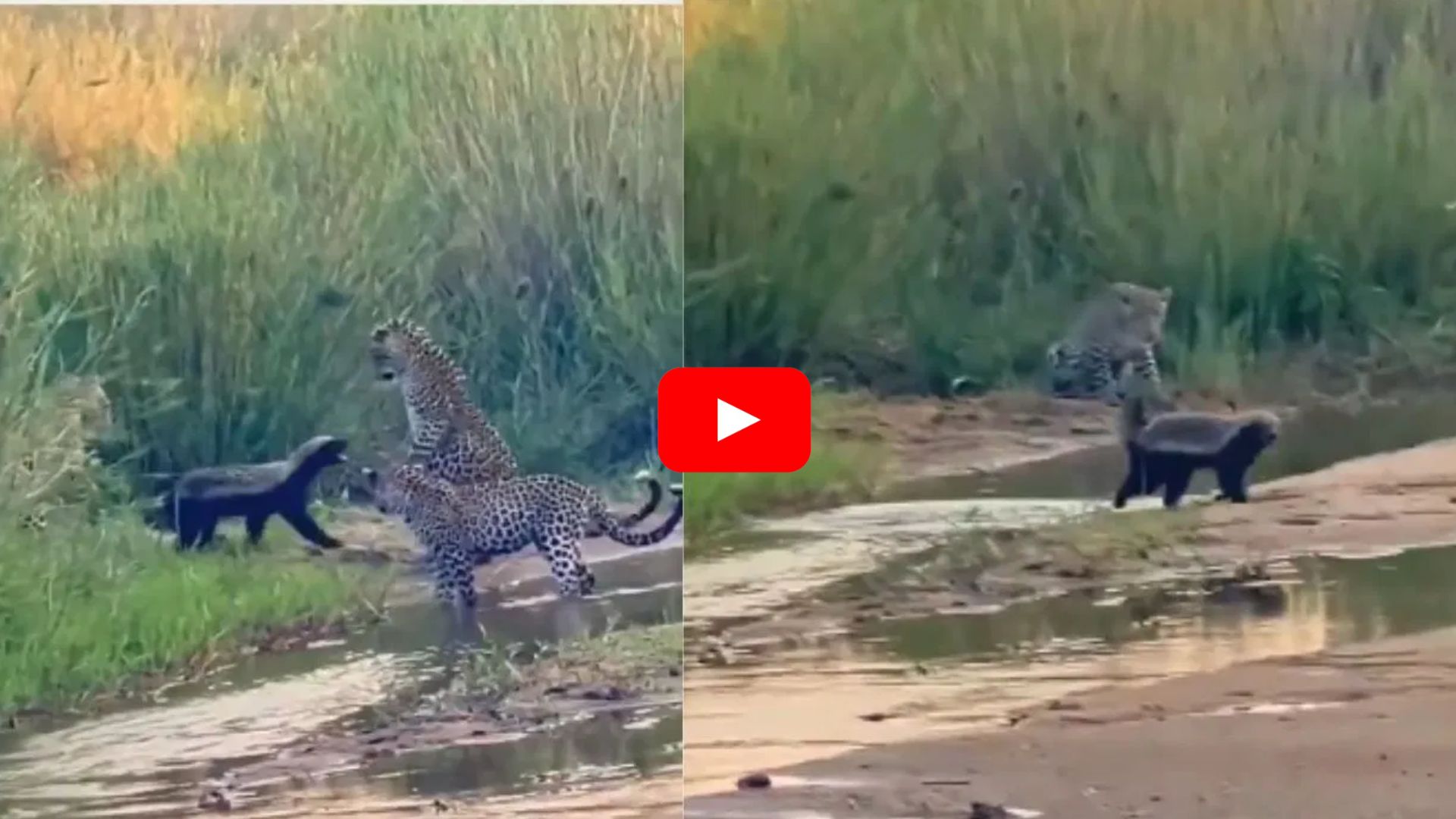 Leopards Vs Grizzly Bear Viral Video Watch: సాధారణంగా పులు, సింహాలు, చిరుతపులలకు మధ్య తరచుగా గొడవలు వస్తూనే ఉంటాయి. ఇందులో అడవి రాజైనా సింహాలు తరచుగా విజయం సాధిస్తాయి. నిజానికి కొన్ని జంతువులు సింహాలను కూడా బయపెడుతూ ఉంటాయి. ఇవి ఎంతో ధైర్యంతో ఉండడమే కాకుండా చాలా స్ట్రాంగ్గా కూడా ఉంటాయి. ఇవి ఇతర జంతువులను సైతం చంపుకుని తింటాయి. ఇలాంటి జంతువులకు సంబంధించిన చాలా వీడియోలు సోషల్ మీడియాలో వైరల్ అవుతూ ఉంటాయి. తాజా వైరల్ అవుతున్న వీడియో కూడా ఈ కోవకు చెందినదే..