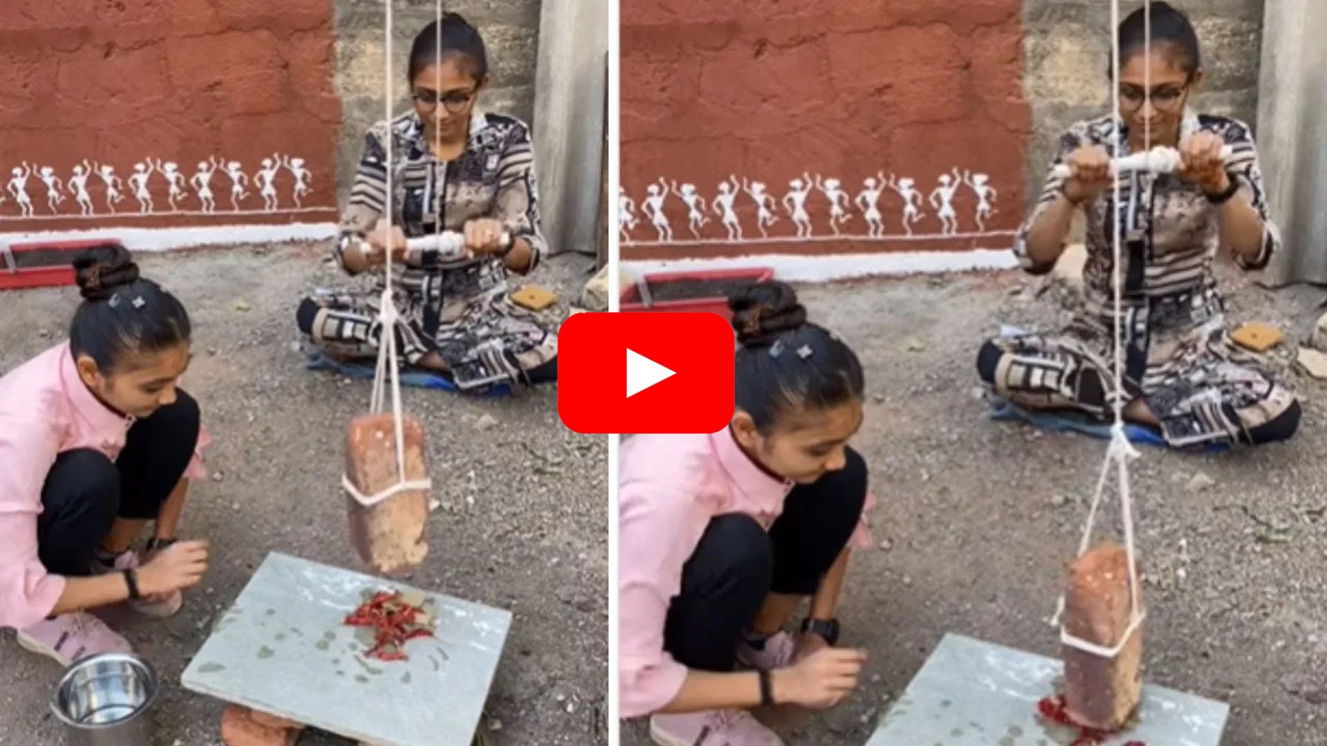 తాజాగా ఇద్దరు అమ్మాయిలు ఎండు మిరపకాయలను చేతులతో కాకుండా ప్రత్యేకంగా తయారు చేసిన ఒక మగ్గం లాంటి యంత్రం సహాయంతో కోడిలా దంచడం మీరు గమనించవచ్చు. ఆ ఇద్దరి మహిళలకు ఉన్న తెలివితేటలను ఉపయోగించి ఆ యంత్రాన్ని తయారుచేసి కారంపొడిని దంచుతున్నట్లు సోషల్ మీడియాలో వార్తలు తెగ వైరల్ అవుతున్నాయి. ఈ వీడియో @_hetals_art అనే ఇంస్టాగ్రామ్ ఖాతా నుంచి షేర్ చేశారు.. ఇందులో ఇద్దరు యువతులు ఒక ఇటుకకు రాడ్ సహాయంతో తాడు కట్టి.. ఒక మహిళ అటు ఇటు లాగడం మీరు గమనించవచ్చు. అంతేకాకుండా ఆ రాడ్లు ఆగడంతో ఇటుక కూడా పైనకి కిందికి రావడం కనిపిస్తుంది. దానికిందే వారు కొన్ని ఎండుమిరపకాయలను పెట్టడంతో అవి పైనుంచి వచ్చే ఇటుక బరువుతో మిరపకాయలు కారం కోడిలా మారడం మీరు గమనించవచ్చు. దీనికి సంబంధించిన వీడియో ఇప్పుడు సోషల్ మీడియాలో వైరల్ గా మారింది.