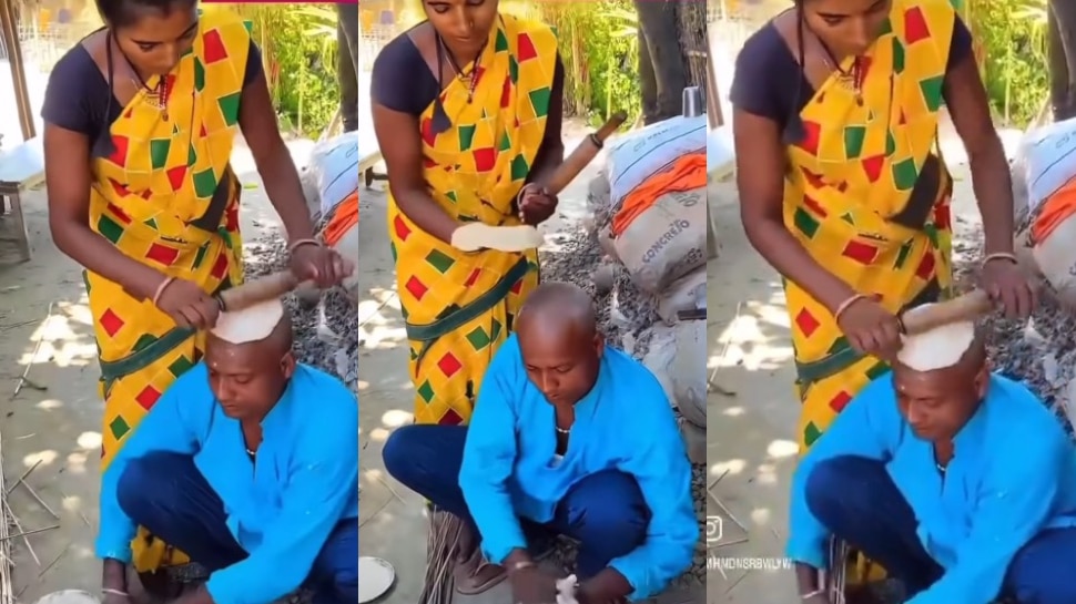 Married woman making rotis on husband bald head video: సాధారణంగా పెళ్లి తర్వాత భార్యభర్తల మధ్య ఏదో చిన్న చిన్న గొడవలు వస్తునే ఉంటాయి. ఇద్దరు పెరిగిన వాతావరణం, అలవాట్లు కాస్త భిన్నంగా ఉంటాయి. ఒకర్ని మరోకరు అర్థం చేసుకునేందుకు కొంచెం సమయం పడుతుంది. అయితే.. చాలా మంది ఏదైన సమస్యలు ఉంటే తమలో తాము మాట్లాడుకుని గొడవలు బైటకు రాకుండా చూసుకుంటారు. కానీ మరికొందరు మాత్రం.. ప్రతి చిన్న విషయంను భూతద్దంలో పెట్టి చూసుకుంటారు. అంతే కాకుండా.. ప్రతిదాన్ని పంచాయతీలు పెట్టి గొడవలు పెద్దది చేసుకుంటారు.