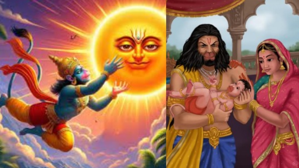 కేసరి, అంజనాదేవీలు శివుడి కోసం ఘోరంగా తపస్సు చేసి తమకు సంతానం కావాలని వరం కోరుకుంటారు . దీంతో శివుడి తన అంశతో గొప్ప శక్తి కల్గిన కుమారుడు పుడతారని వరం ఇస్తాడు . శివుడి వర ప్రభావం వల్ల కేసరి, అంజనా దేవీలకు పుత్రుడు జన్మిస్తాడు. ఆయన పుట్టుకతోనే అనేక శక్తులు కల్గి ఉంటాడు. ఒక రోజు బాల్యంలో ఉయ్యాలలో వాకిట్లో పడుకుని ఉండగా.. ఆకాశంలో సూర్యుడ్ని చూస్తాడు. ఎర్రగా ఉండటంతో.. అదేదో ఫలం కాబోలు అని వెంటనే ఆకాశంలో బాల హనుమాన్ ఎగిరి సూర్యుడ్ని సమీపించడానికి వెళ్తుంటాడు.