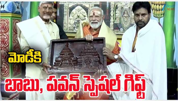 PM Modi AP Tour News: భారత ప్రధానమంత్రి నరేంద్ర మోదీ కర్నూల్ పర్యటనలో భాగంగా శ్రీశైల పుణ్యక్షేత్రంలో పూజలు నిర్వహించారు. ఈ సందర్భంగా ఆయనతో పాటు ఏపీ ముఖ్యమంత్రి చంద్రబాబు నాయుడు, డిప్యూటీ సీఎం పవన్ కల్యాణ్ హాజరయ్యారు. ఈ క్రమంలో ప్రధాని మోదీకి చంద్రబాబు, పవన్.. దేవాలయ జ్ఞాపికలతో పాటు ఓ స్పెషల్ గిఫ్ట్ కూడా ఇచ్చారు.