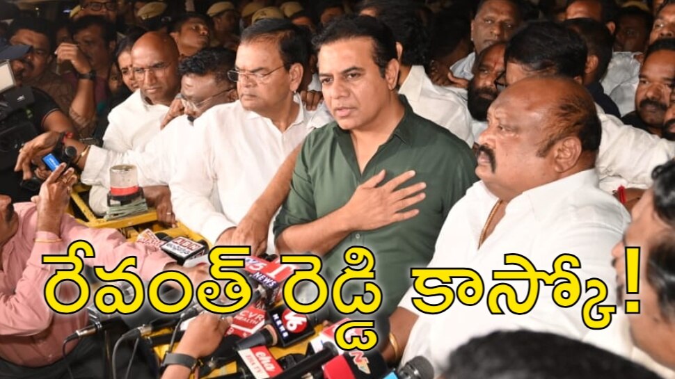 KTR Offer To Revanth Reddy: ఫార్ములా ఈ కారు రేసు కేసులో అణాపైసా కూడా అవినీతి జరగలేదని బీఆర్ఎస్ పార్టీ వర్కింగ్ ప్రెసిడెంట్, మాజీ మంత్రి కేటీఆర్ పునరుద్ఘాటించారు. తాను అవినీతికి పాల్పడలేదని.. తప్పు చేయలేదని మరోమారు స్పష్టం చేశారు. ఈడీ విచారణకు తాను సంపూర్ణంగా సహకరించానని.. ఎన్నిసార్లు పిలిచినా తాను తప్పక వెళ్తానని.. వారు అడిగిన అన్ని ప్రశ్నలకు సమాధానం ఇస్తానని తెలిపారు. ఈ సందర్భంగా రేవంత్ రెడ్డిపై కేటీఆర్ ఆగ్రహం వ్యక్తం చేశారు. అతడు జైలుకు వెళ్లడంతో తనను కూడా జైలుకు పంపాలని రేవంత్ రెడ్డి చూస్తున్నట్లు కేటీఆర్ పేర్కొన్నారు.