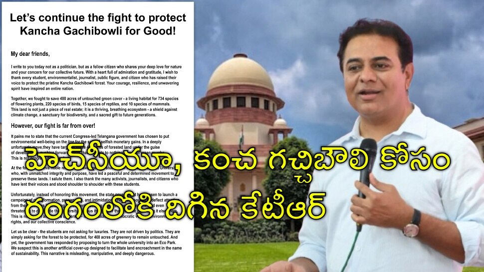 KT Rama Rao Letter: దేశవ్యాప్తంగా తీవ్ర సంచలనం రేపిన హెచ్సీయూ భూముల వ్యవహారంపై మరోసారి బీఆర్ఎస్ పార్టీ వర్కింగ్ ప్రెసిడెంట్, మాజీ మంత్రి కేటీఆర్ స్పందించారు. దేశ అత్యున్నత న్యాయస్థానం సుప్రీంకోర్టుతోపాటు తెలంగాణ హైకోర్టు మొట్టికాయలు వేసినా.. కీలక ఆదేశాలు జారీ చేసినా ప్రభుత్వం వినిపించుకోకపోవడంపై కేటీఆర్ సంచలన లేఖ విడుదల చేశారు. తెలంగాణ ప్రజలు, విద్యార్థులు, పర్యావరణ ప్రియులకు కేటీఆర్ బహిరంగ లేఖ రాశారు. 'కంచ గచ్చిబౌలి, హెచ్సీయూ రక్షణకు చేతులు కలపాలి' అని పిలుపునిచ్చారు.