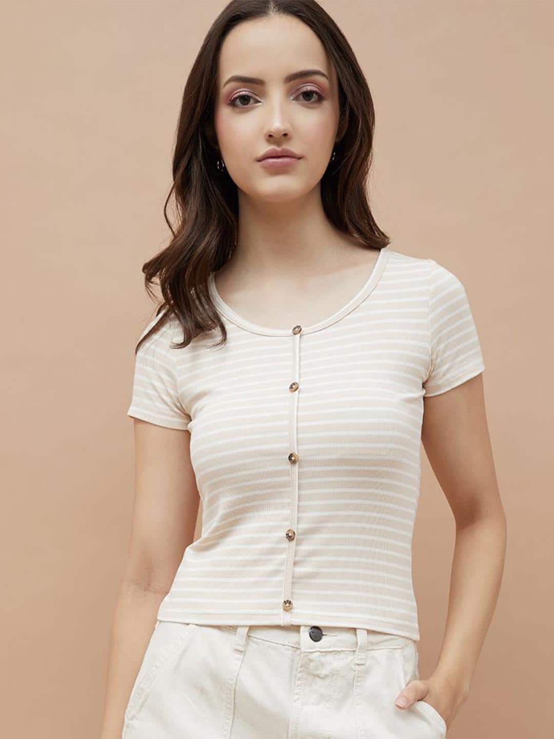 4. Ginger by Lifestyle Striped Round-Neck Fitted Crop Top
