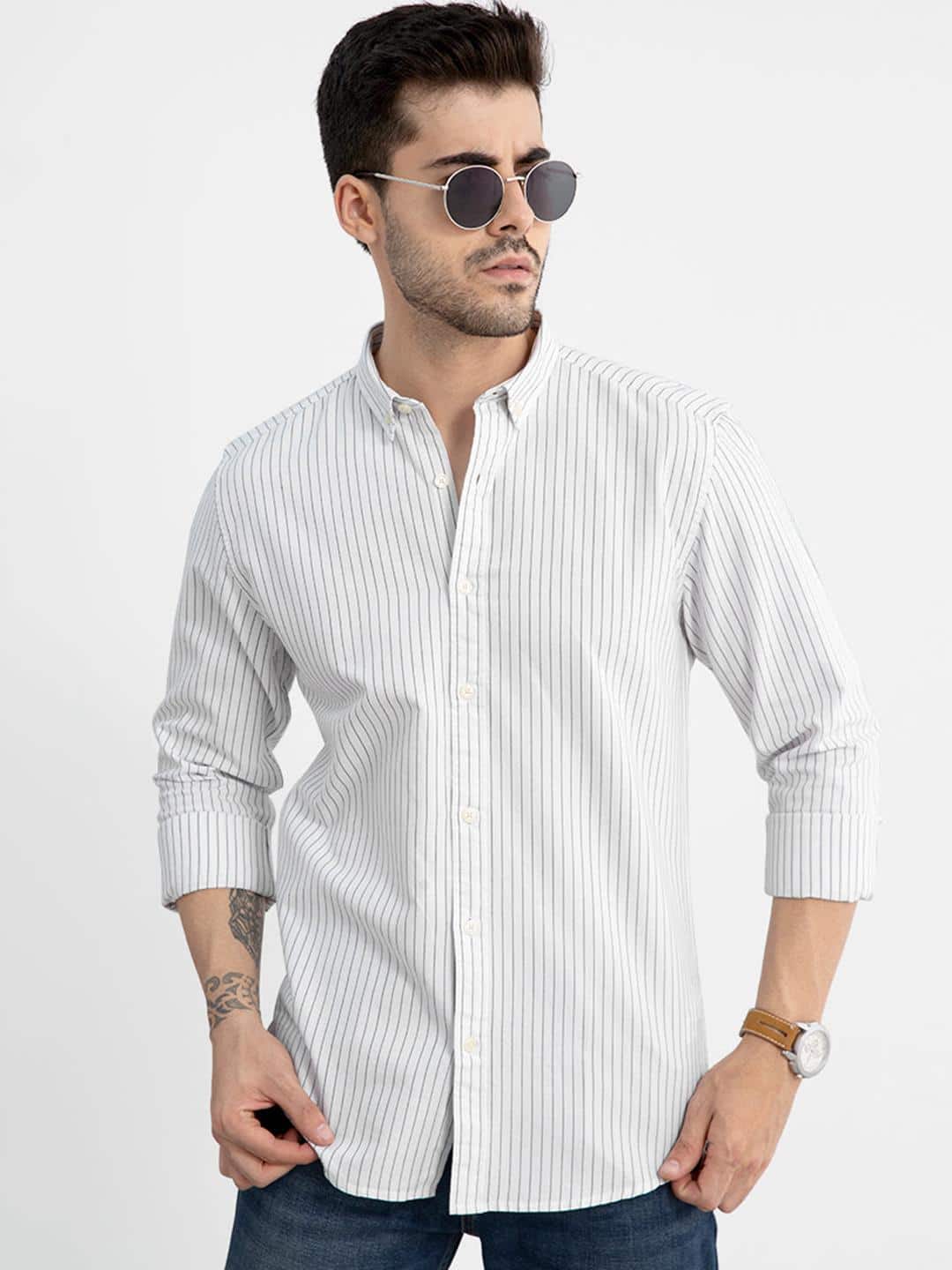 The Snitch White Classic Slim Fit Shirt adds an elegant touch to your everyday outfit. The understated vertical stripes create a taller, crisper look. Constructed from soft cotton, the shirt guarantees all-day comfort and an effortlessly stylish look. From brunching to business-casual meetings, this shirt will bring immediate class to any outfit.